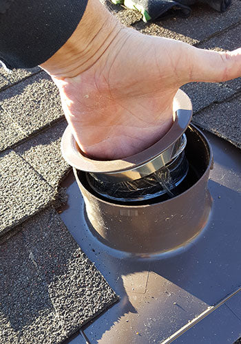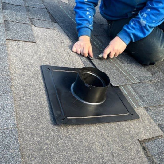 If replacing an old vent, remove it first. If not, cut a 3–inch hole in the roof where the ductwork will go.