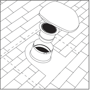 Line up the four tabs on the Vent Cap with the slots on the Base Flange.